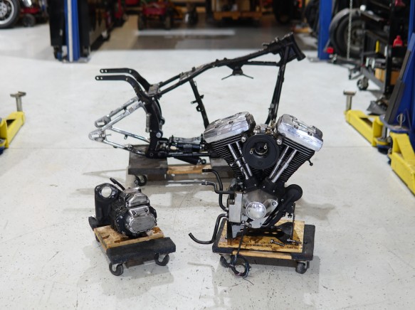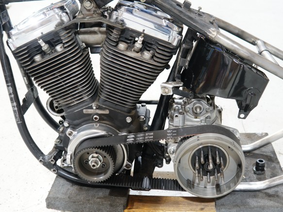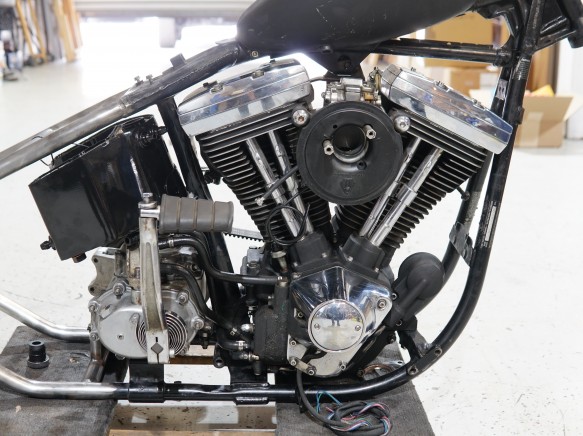 純正フレーム加工リジットフレーム 41mmワイドグライド6インチロングフォーク F21" R16" ショベル4速ミッション(オーバーホール済)2"BDLベルトプライマリー *仕様変更可能です。